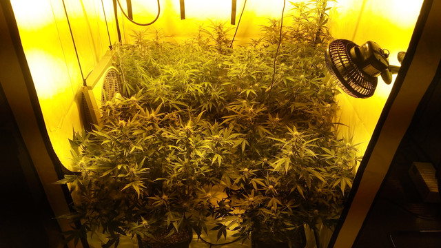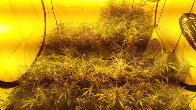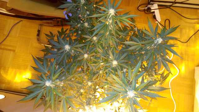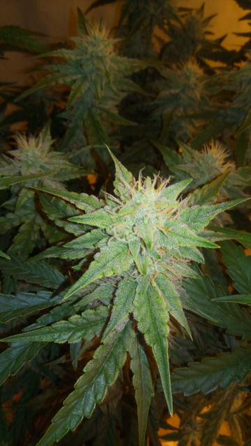 . The girls are mostly doing fine if you don't count the bleaching and showing CalMg problems, which we discussed the last 2 pages, on some of them. Still doing Bio PK every 5 days and they seem to drink it right up after that one day dry cycle- No nute burn or such, so I guess they're liking the dose. The stretch is quietly fading away and some serious budding is starting which tells me that we're now in the waiting game